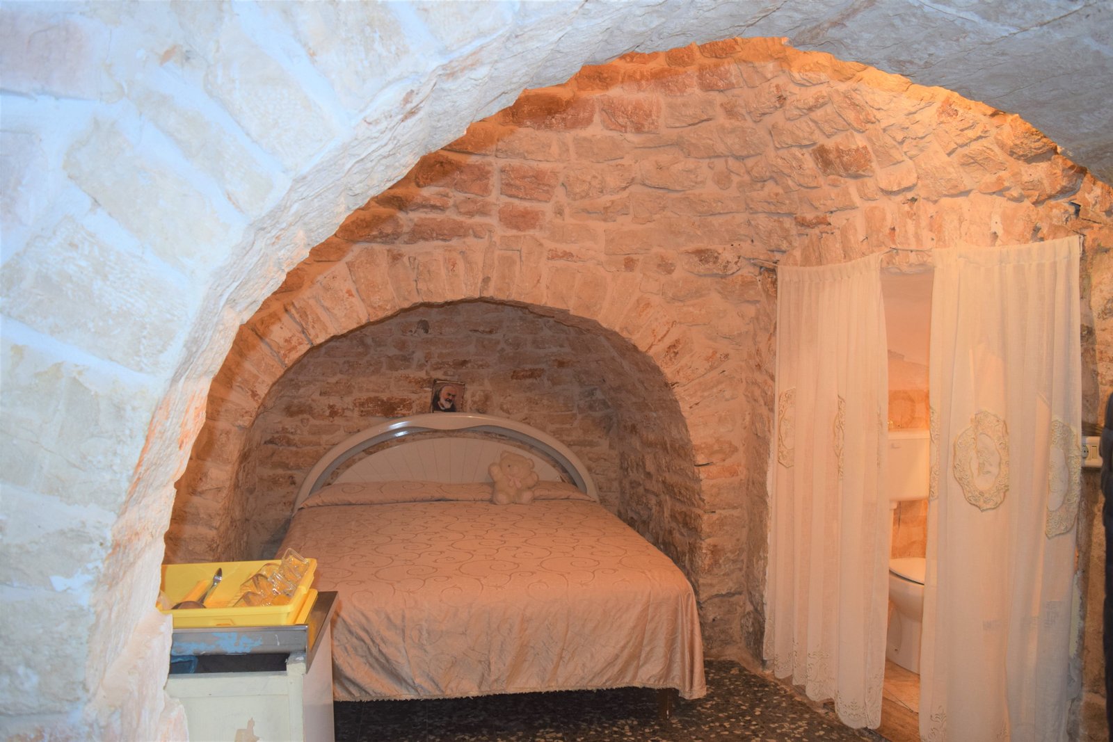 Many of the trulli have a “holiday sign” on them indicating that you can stay in one like a hotel. You see several signs when walking the streets, indicating that the trulli is available for rent. In fact, our friends Pat and Eugene stayed in one several years ago and are actually staying currently in one again and said they truly enjoyed the experience.