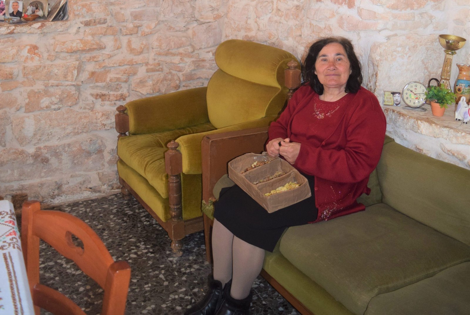 When we visited, there was a nice lady who had her door open. Of course, I neglected to ask her name but she was so willing and generous to show us the inside of her home. She explained that some of the domed roofs have wooden floors with a hole in the middle. The children would sleep there (using a ladder for entry) as that part of the house was always warm.