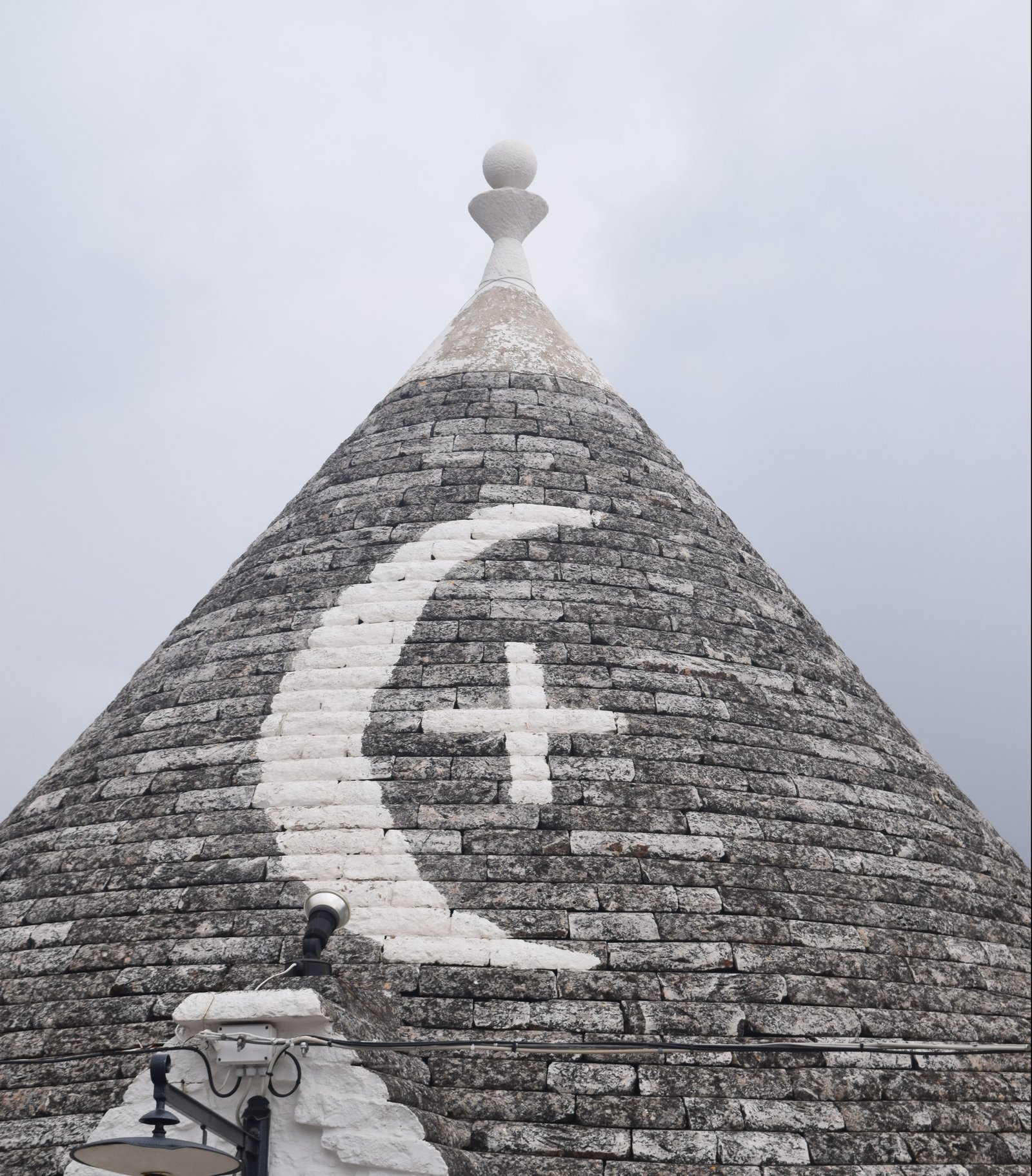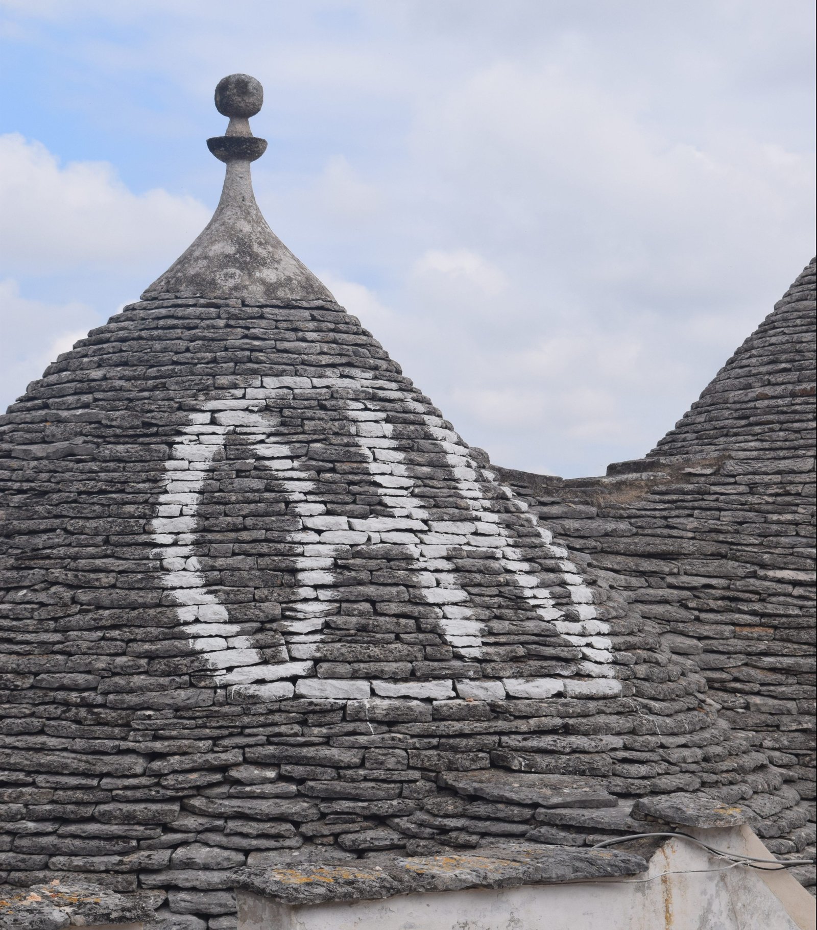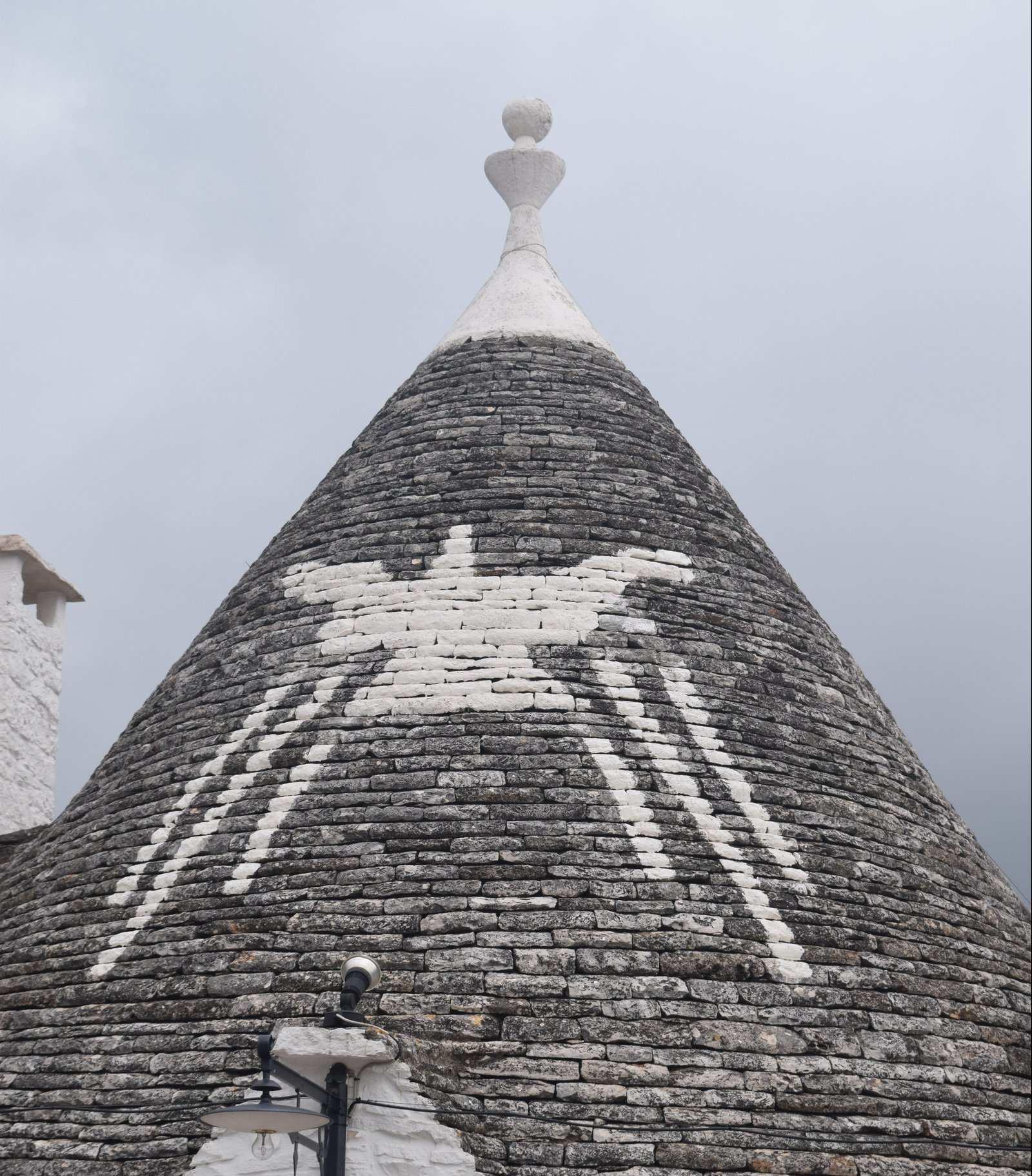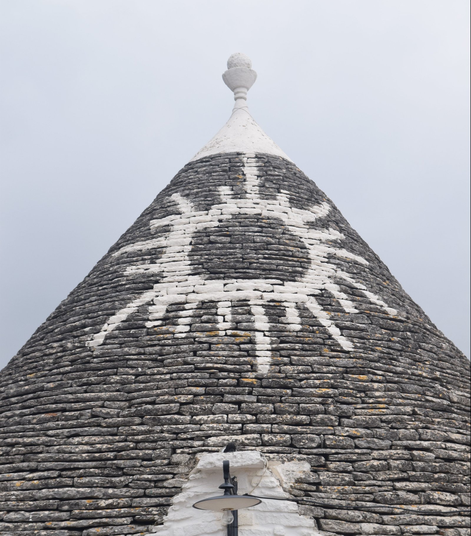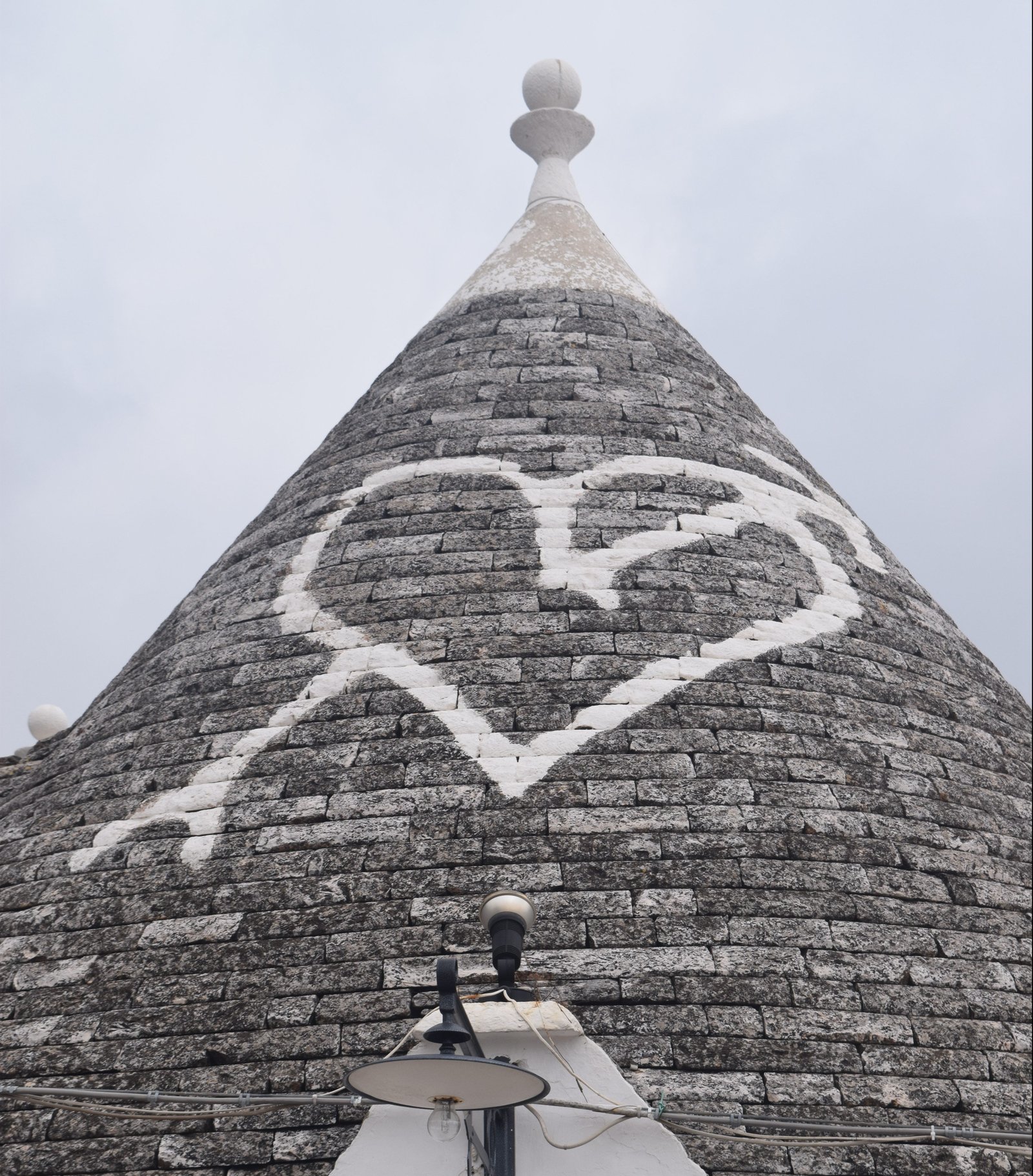 The conical roofs also told you about the inhabitants who lived there. Three or more roofs meant you were wealthy. They were also painted with a symbol. These symbols were either a sign of the zodiac or religious symbols of the region. Each trulli has a spire which was also used as an identification of the people living there.