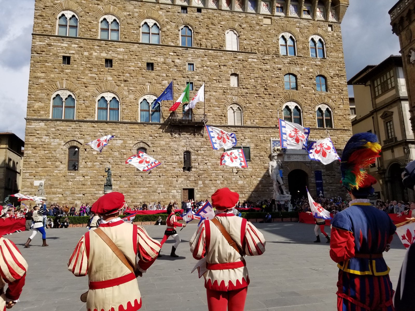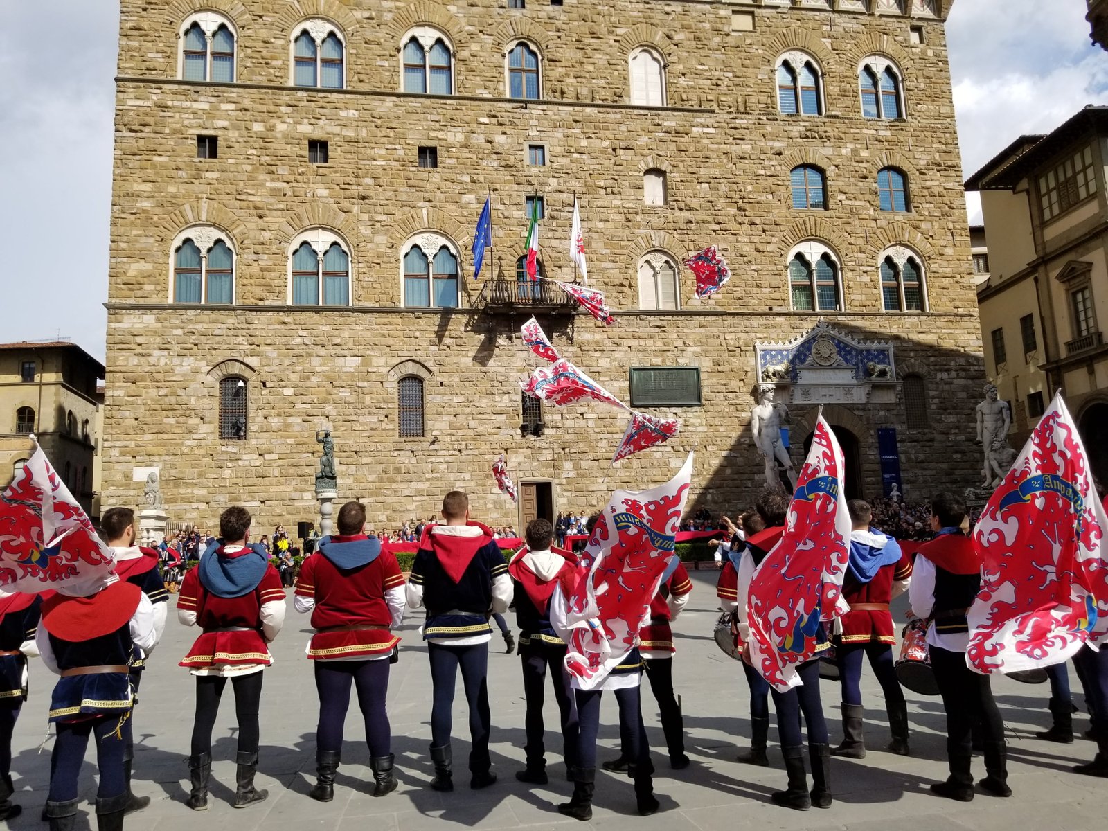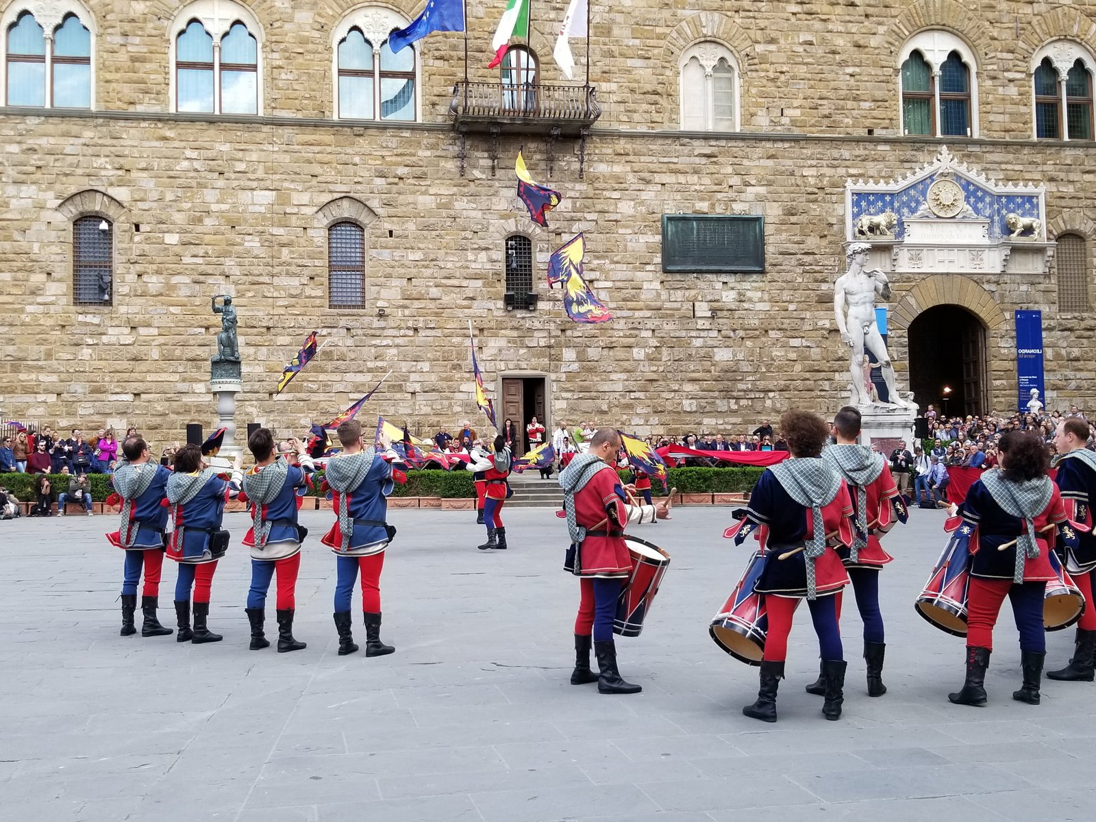 Gary and I actually got to see The Bandierai of the Uffizi throwing the flags when we were in Florence this May. We arrived in Florence at the end of April and there is a fantastic publication, The Florentine which is published each month in English. We went to the Information Office, forgetting that the published copy doesn’t get released until the first Thursday of the month. Luckily, I looked online and saw that the 2019 event was being held on May 1st!