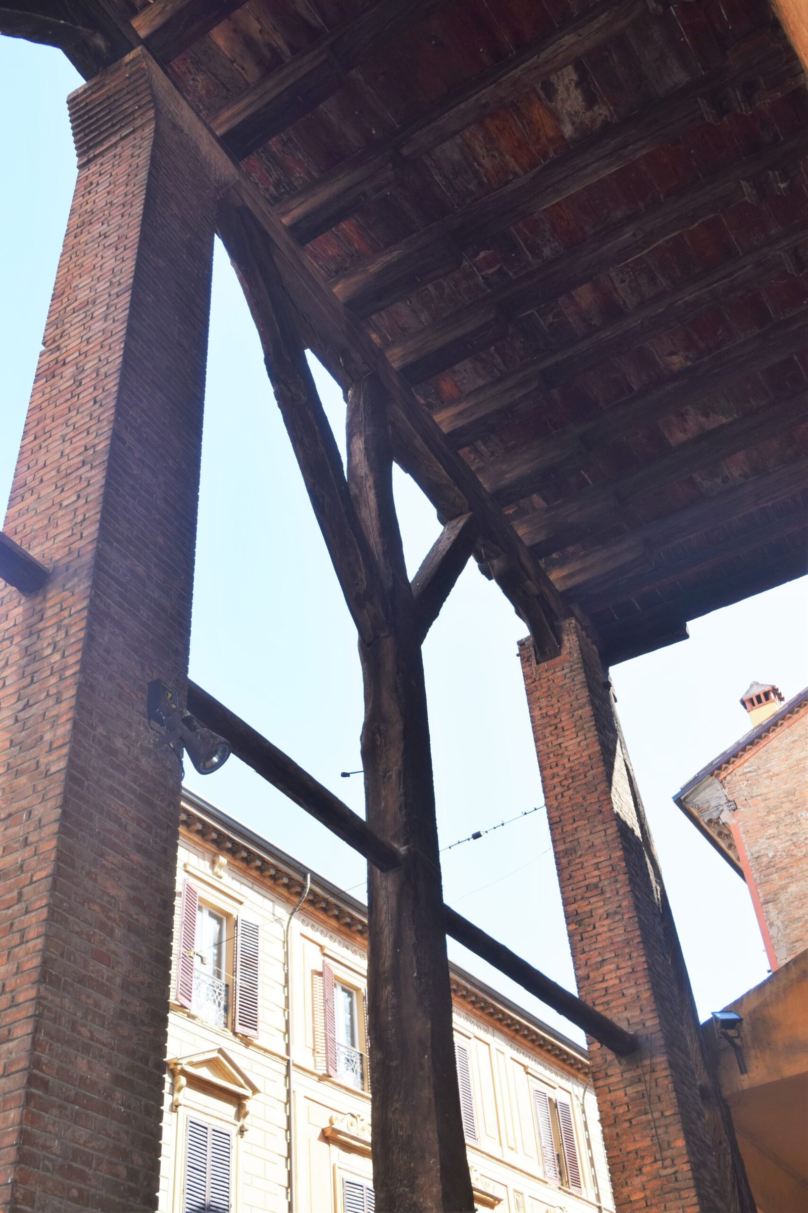 The portico of Casa Isolani in Strada Maggiore has 9-meter-high columns (or 29.5 feet). This is the original wooden portico of Palazzo Grassi. This small section of portico dates back to the 13th century. The very high oak beams bear the third floor of a palace.