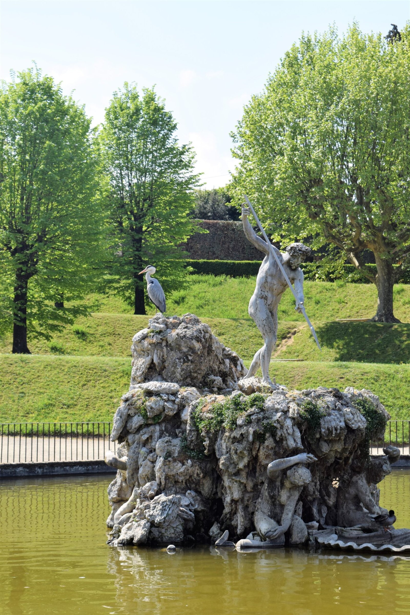 As you enter the gardens from the Pitti Palace’s courtyard known as the “Cortile dell’Ammannati,” the first staircase (photo above) leads up to the “artichoke” fountain. This was nicknamed by Florentines whose large octagonal basin is decorated with numerous statues and crowned by a bronze lily.