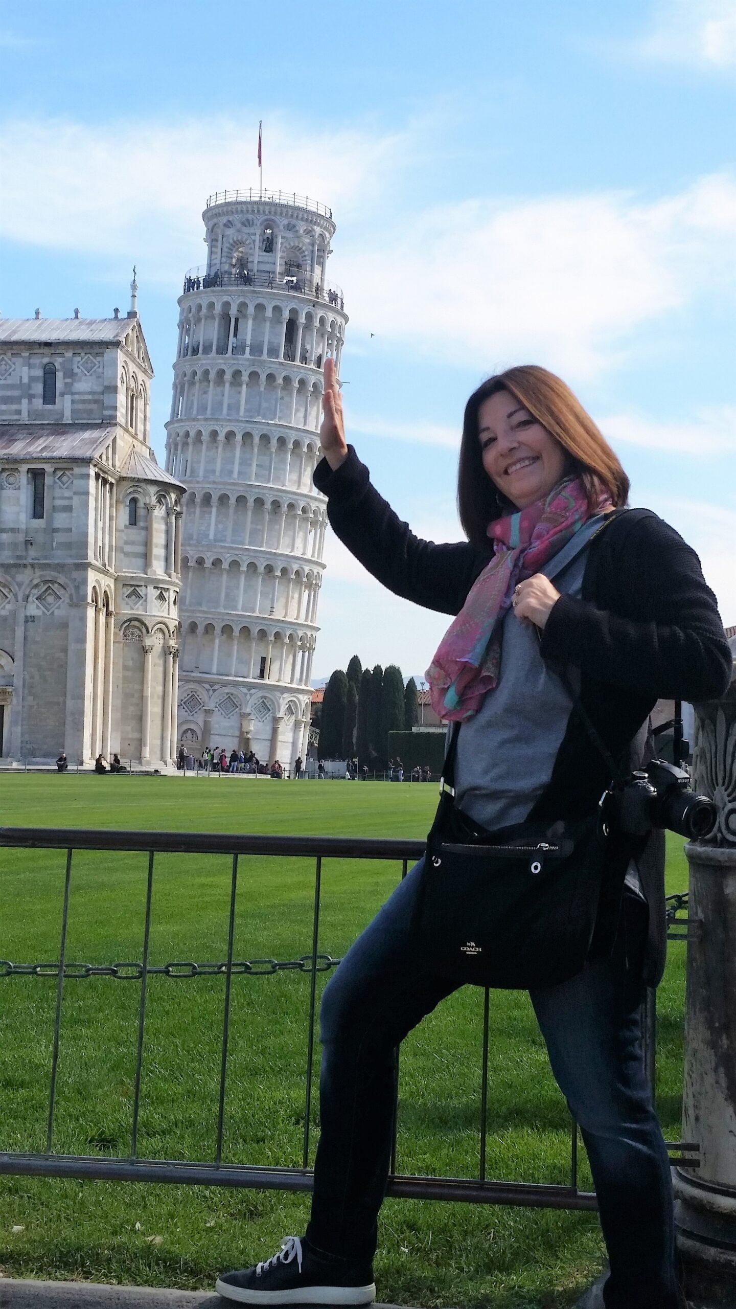UPDATE: November 2021 – We met our friend Victoria from Firenze at the Pisa train station as she too wanted to climb the tower. It was an incredible experience and one I would highly recommend. Although it was 295 steps and at times we had to take a break, we made it to the top with stunning views – even though it was an overcast day.